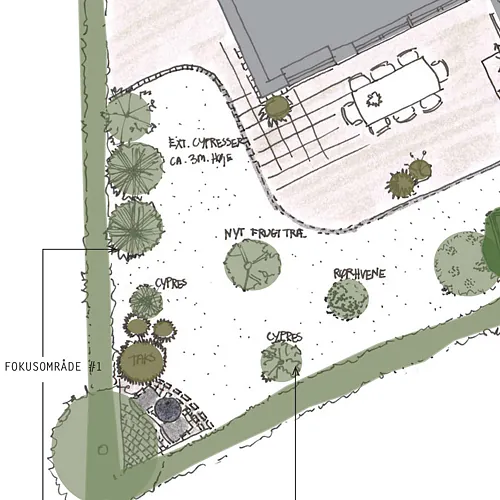 Beplantningsplan for ca.200m2 have i samarbejde med anlægsgartner