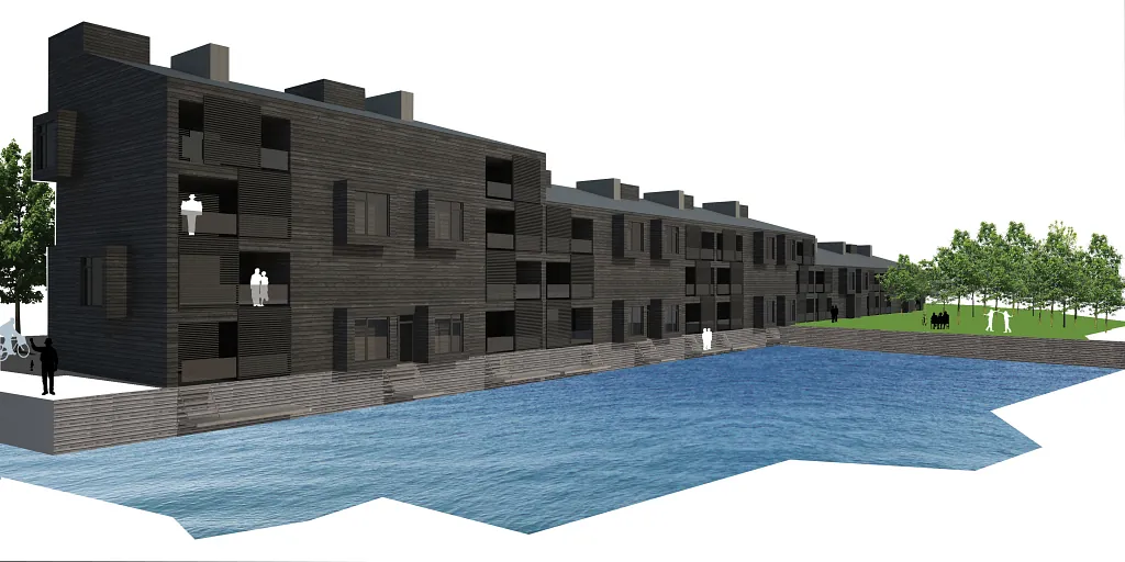 - "Den blå længe" - boligstrukturen langs havnekanten og herunder: